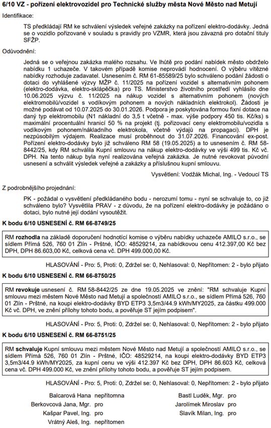 Veřejná zakázka – pořízení elektrovozidel pro Technické služby: RM odsouhlasila pořízení elektro dodávky pro TS.