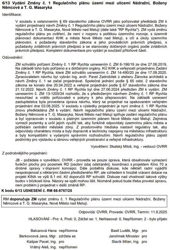 Vydání Změny č. 1 Regulačního plánu Rychta: důležitý krok v možnostech rozvoje města v okolí Rychty.