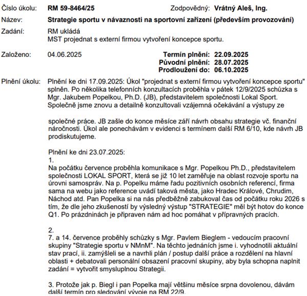 Strategie sportu: Proběhlo jednání s externí firmou, bod budeme dále sledovat.
