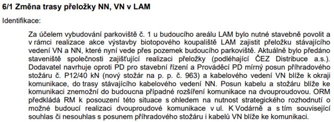 Změna trasy přeložky NN, VN v LAM: Další,