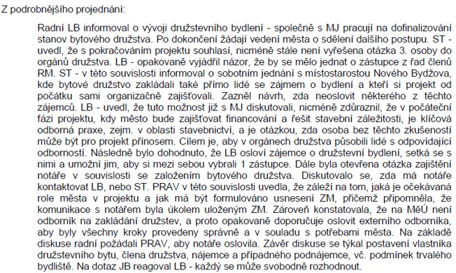 DISKUSE: Upozorňujeme na diskuzi ohledně vzniku bytového družstva, kde je evidentní, že vedení města v tomto tématu tápe.