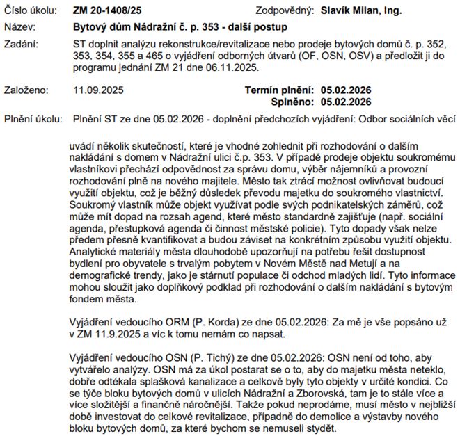 Bytový dům Nádražní č. p. 353 – další postup: Upozorňujeme na