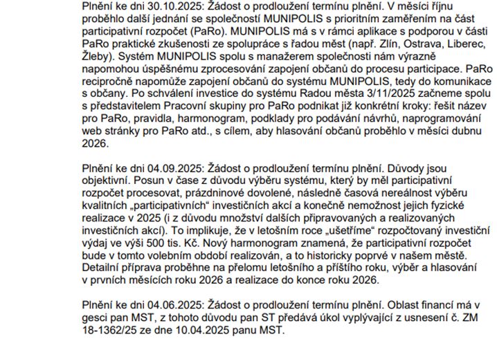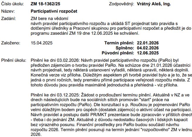 Participativní rozpočet: Z uvedeného plnění úkolu nemůže být