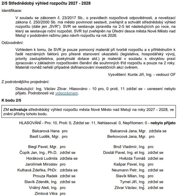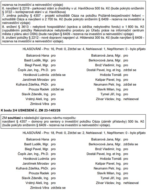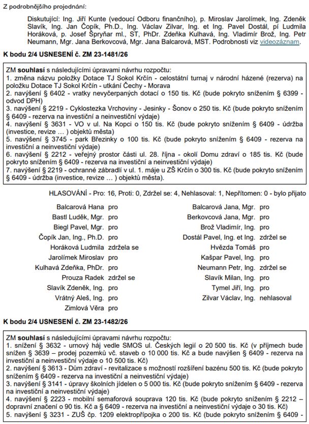 většinou hlasů tři usnesení týkající se úprav rozpočtu, nicméně zásadní