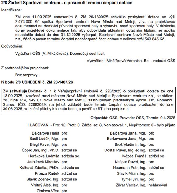 přijatou pouhými 12 hlasy z celkového počtu 21 zastupitelů.