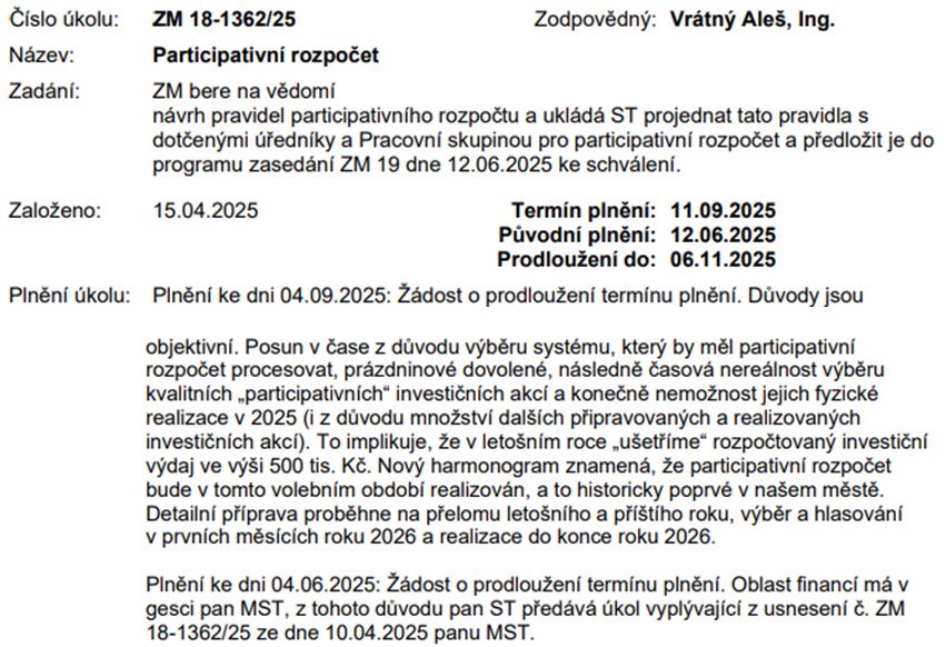 participativní rozpočet nepovažuje stávající vedení příliš vážně.