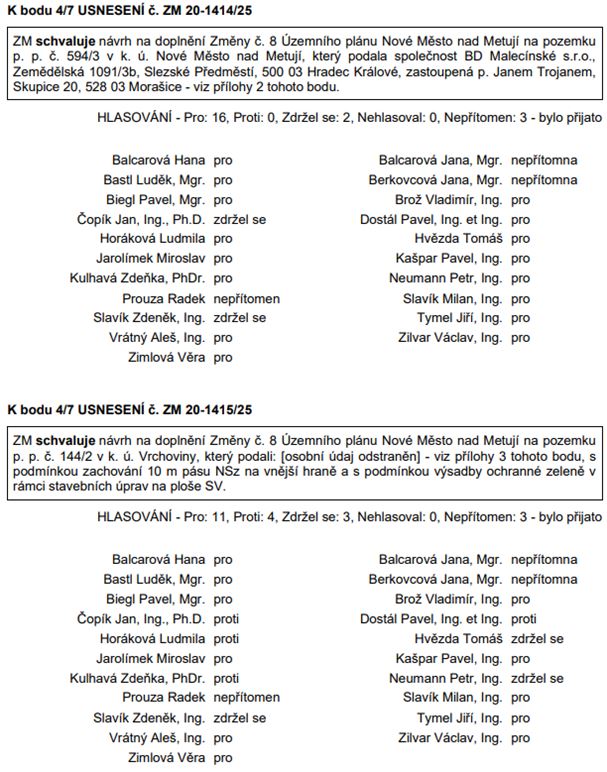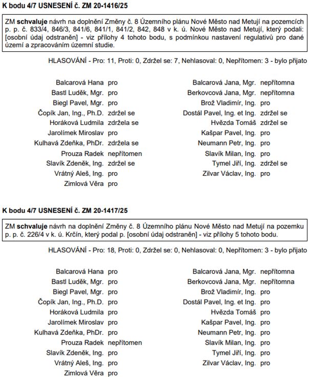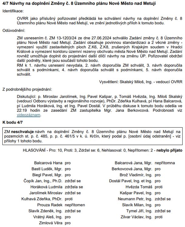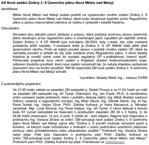 Město nad Metují: Tento postup pořizovatele, kdy se do dané změny č. 8 doplňují