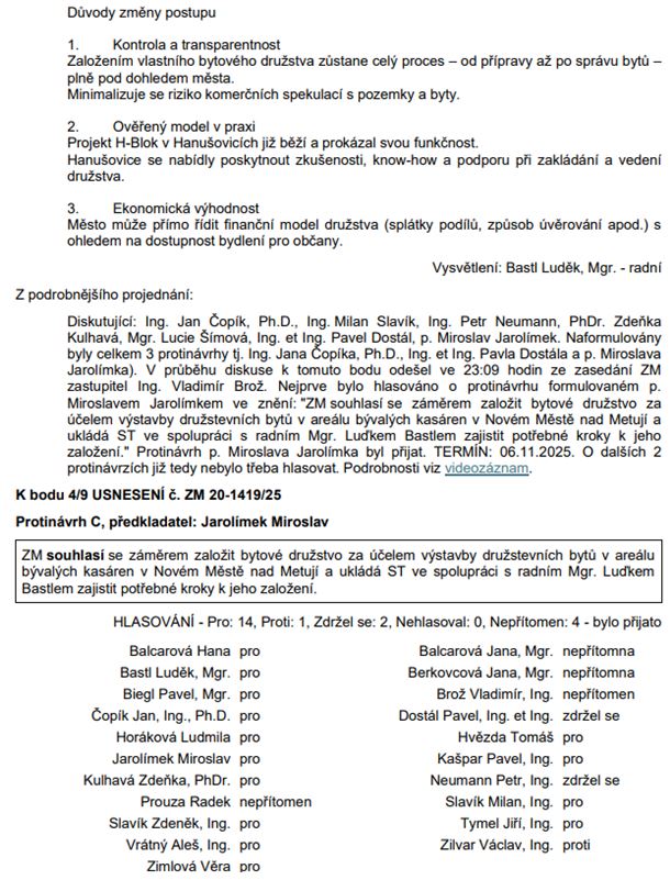 přístupu města, kdy by mělo být bytové družstvo založeno přímo městem. Tento